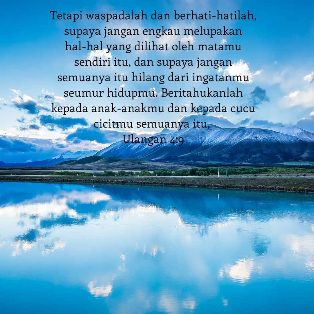Salah satu cara terindah yang dapat dilakukan orangtua dan kakek nenek untuk mempengaruhi anak-cucu mereka adalah dengan meneruskan dan menyampaikan kebenaran Alkitab. Dalam Ulangan 4, Musa memerintahkan umat Allah agar tidak melupakan hal2 yang dilihat oleh mereka tentang Allah, dan supaya jangan semuanya itu hilang dari ingatan mereka (ay.9). Musa melanjutkan dengan berkata bahwa meneruskan hal2 itu kepada generasi2 mendatang akan memampukan mereka belajar takut kepada Allah (ay.10) dan hidup seturut dengan kebenaranNya di tanah yang diberikanNya kepada mereka. Memberikan warisan kebenaran dlm Tuhan Yesus kpd anak kita dan cucu kita adalah sesuatu yg sangat berharga agar supaya mereka hidup dalam takut akan Tuhan.