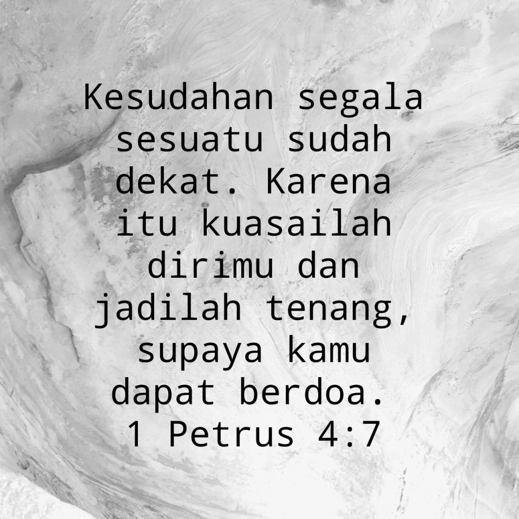 Kesudahan segala sesuatu sudah dekat. Karena itu kuasailah dirimu dan jadilah tenang, supaya kamu dapat berdoa