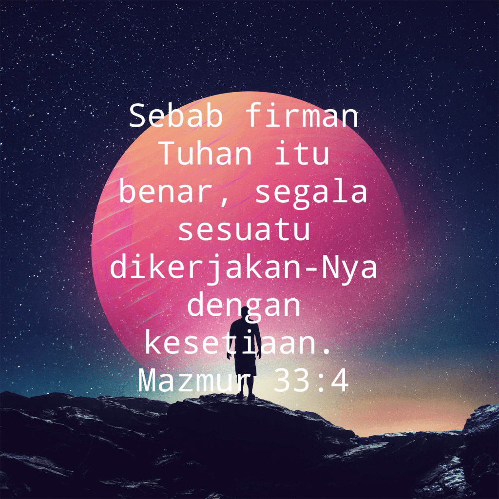 Sebab firman Tuhan itu benar, segala sesuatu dikerjakan-Nya dengan kesetiaan