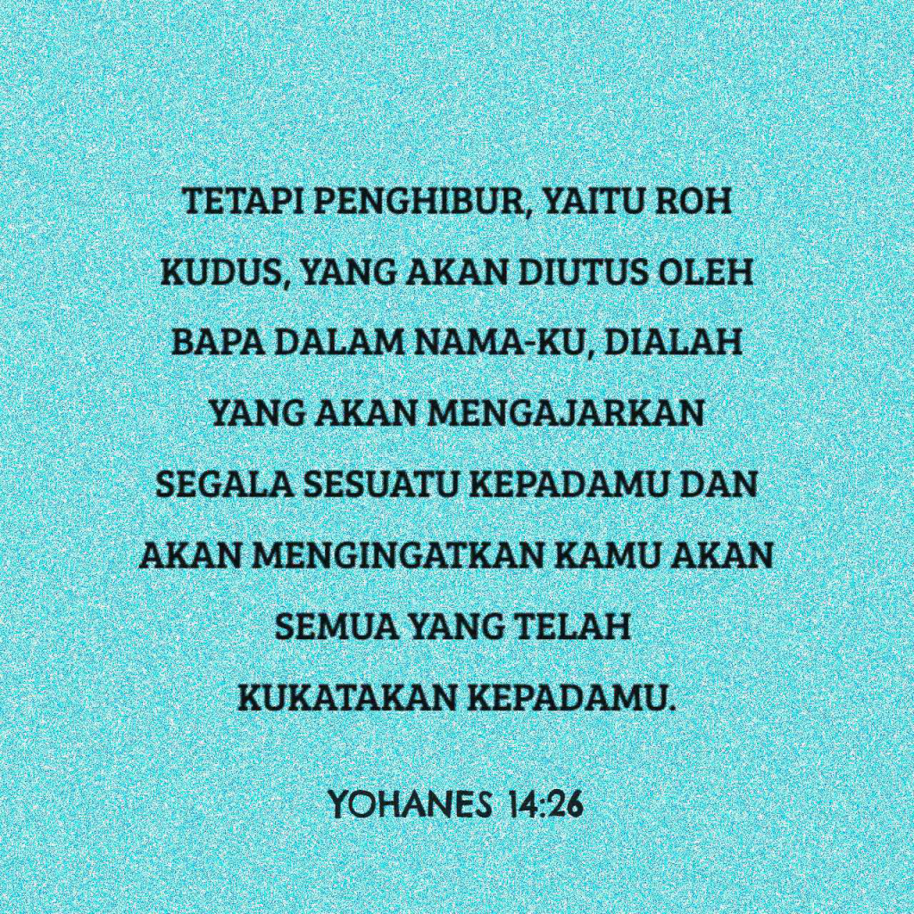 Penghibur, yaitu Roh Kudus, yang akan diutus oleh Bapa dalam nama-Ku, Dialah yang akan mengajarkan segala sesuatu kepadamu.