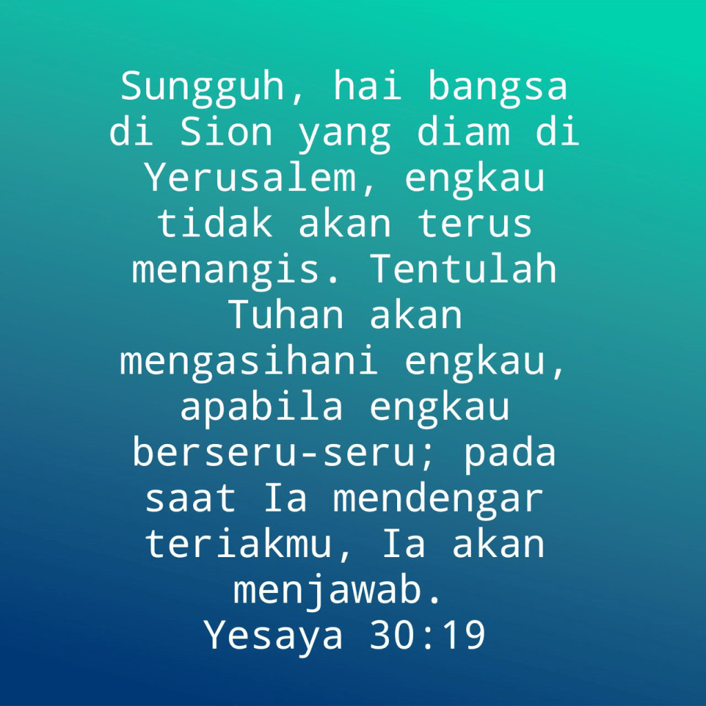Yesaya 30:19-26 menggambarkan suatu masa depan ketika umat Allah akan kembali dibimbing oleh pengajaran yang benar (ay. 20-22) dan tanahnya menghasilkan “berlimpah-limpah” makanan (ay. 23). Tak ada lagi alasan bagi umat untuk “terus menangis” (ay. 19). Mereka akan kembali hidup dan berkembang di Yerusalem (ay. 19).