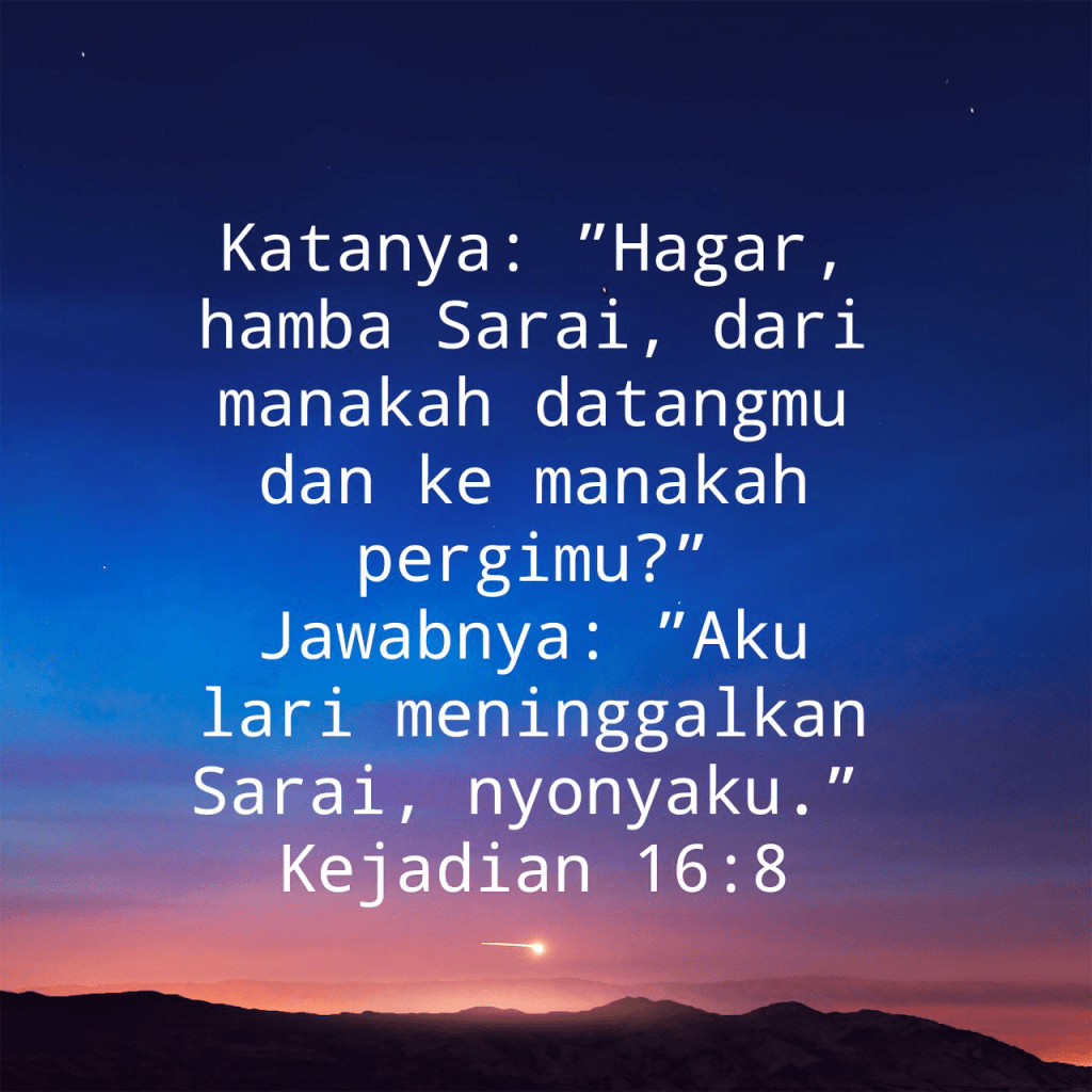Katanya: “Hagar, hamba Sarai, dari manakah datangmu dan ke manakah pergimu?