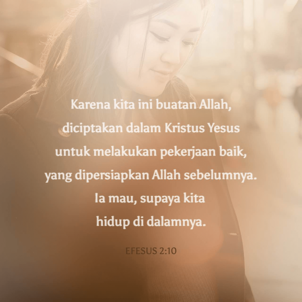 Dalam Efesus 2:10, kata “buatan” yang kadang diterjemahkan sebagai “hasil karya” atau “mahakarya”, berasal dari kata Yunani. Dari kata ini kita memperoleh kata “poetry” (puisi). Allah telah menciptakan kita sebagai suatu karya seni, puisi yang hidup. Namun, diri kita sebagai karya seni telah menjadi rusak oleh karena dosa. “Kamu dahulu sudah mati karena pelanggaran-pelanggaran dan dosa-dosamu” (ay.1). Allah sedang memulihkan kita, mahakaryaNya: “Allah yang kaya dengan rahmat, . . . telah menghidupkan kita” (ay.4-5).