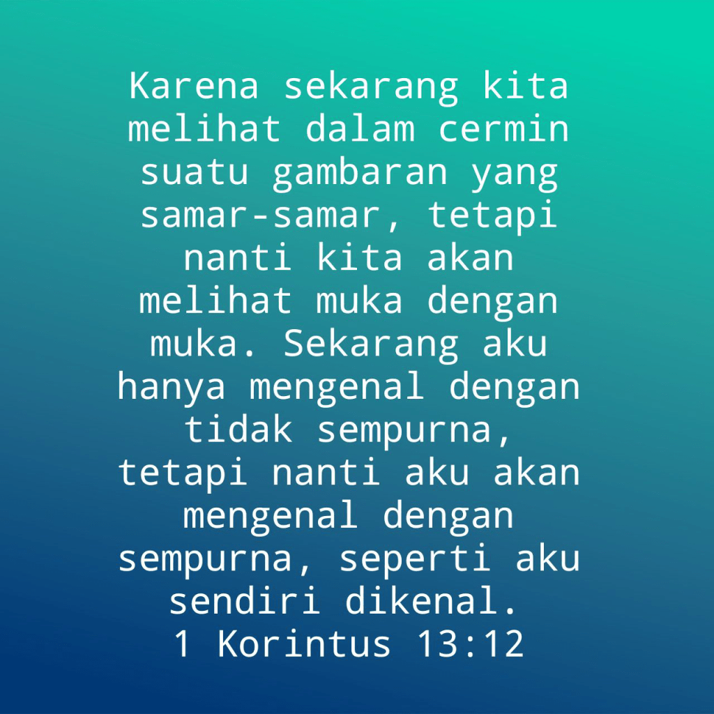 Sekarang kita melihat dalam cermin suatu gambaran yang samar-samar, tetapi nanti kita akan melihat muka dengan muka.