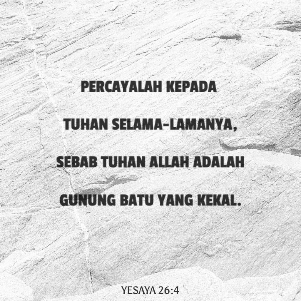 Yesaya 26:4 menggunakan metafora gunung batu, yang menggambarkan rasa aman dan keselamatan di dalam Allah: “TUHAN ALLAH adalah gunung batu yang kekal.” Kata ‘gunung batu’ dalam bahasa Ibrani adalah tsur. Secara harfiah itu berarti tebing, gunung batu, atau batu besar, tetapi secara kiasan, itu menggambarkan tempat perlindungan. Kata itu dipakai sebanyak tiga kali dalam Mazmur 18 (ay. 3,32,47). Di ayat 3, pemazmur menggandakan metaforanya untuk menekankan ketergantungan pada Allah: “Ya TUHAN, bukit batuku, kubu pertahananku dan penyelamatku, Allahku, gunung batuku, tempat aku berlindung, perisaiku, tanduk keselamatanku, kota bentengku!” Di Yesaya 26:4 kata tsur dipasangkan dengan olam, yang berarti masa yang panjang, selama-lamanya, kekal, abadi: “TUHAN ALLAH adalah gunung batu yang kekal.” Pemasangan kata-kata itu meningkatkan kredibilitas Allah berlipat ganda. Percayalah kepadaNya. Kasih setiaNya tidak berkesudahan!