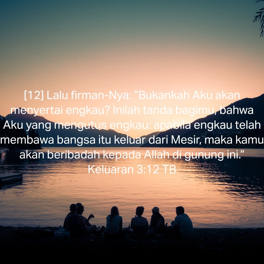 Lalu firman-Nya:”Bukankah Aku akan menyertai engkau? Inilah tanda bagimu, bahwa Aku yang mengutus engkau: apabila engkau telah membawa bangsa itu keluar dari Mesir, maka kamu akan beribadah kepada Allah di gunung ini.”