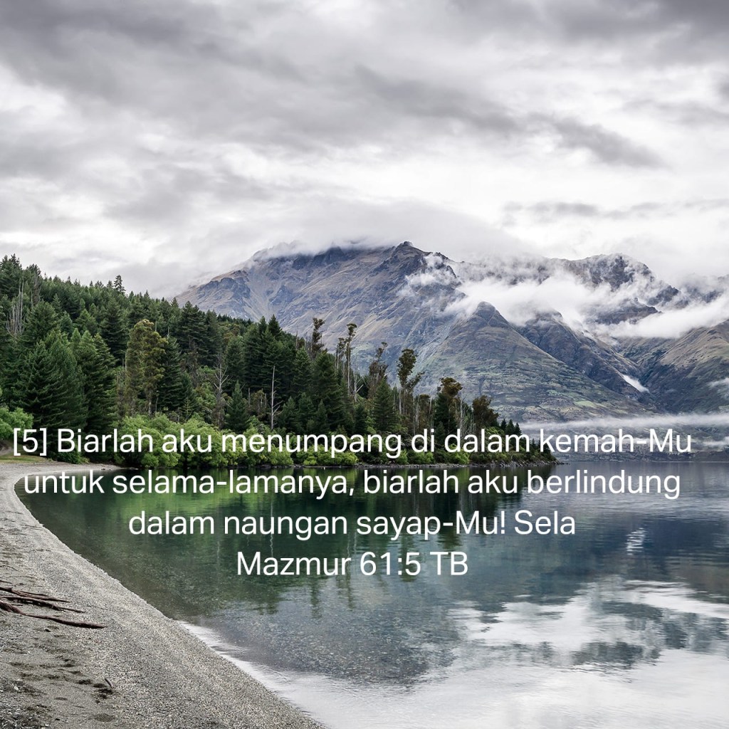 Dalam Mazmur 61, Daud menggambarkan kerinduannya akan kehadiran Allah dengan metafora “gunung batu yang terlalu tinggi bagiku” (ay. 3), “tempat perlindungan” atau “menara yang kuat” (ay. 4), “kemah” dan “naungan sayapNya” (ay. 5). Istilah “kemah” yang digabungkan dengan “naungan sayapNya mungkin mengacu pada sayap kerub pada tabut perjanjian dalam Kemah Suci (Keluaran 25:20). Setelah membebaskan umatNya dari Mesir, Allah memerintahkan mereka untuk membangun Kemah Suci yang akan menjadi tempat kediamanNya di tengah-tengah umatNya (ay. 8). Allah hadir secara dahsyat dan nyata. Di kemudian hari, bait Allah yang dibuat dengan contoh Kemah Suci, akan menjadi pusat bagi umat untuk mengalami kehadiranNya. Bait Allah juga berisi ukiran kerub bersayap di tengah-tengah ruang sebelah dalam (1 Raja-Raja 6:23-27). Orang percaya dalam Tuhan Yesus mengalami hadirat Allah melalui Roh KudusNya yang berdiam di dalam kita (1 Korintus 3:16).