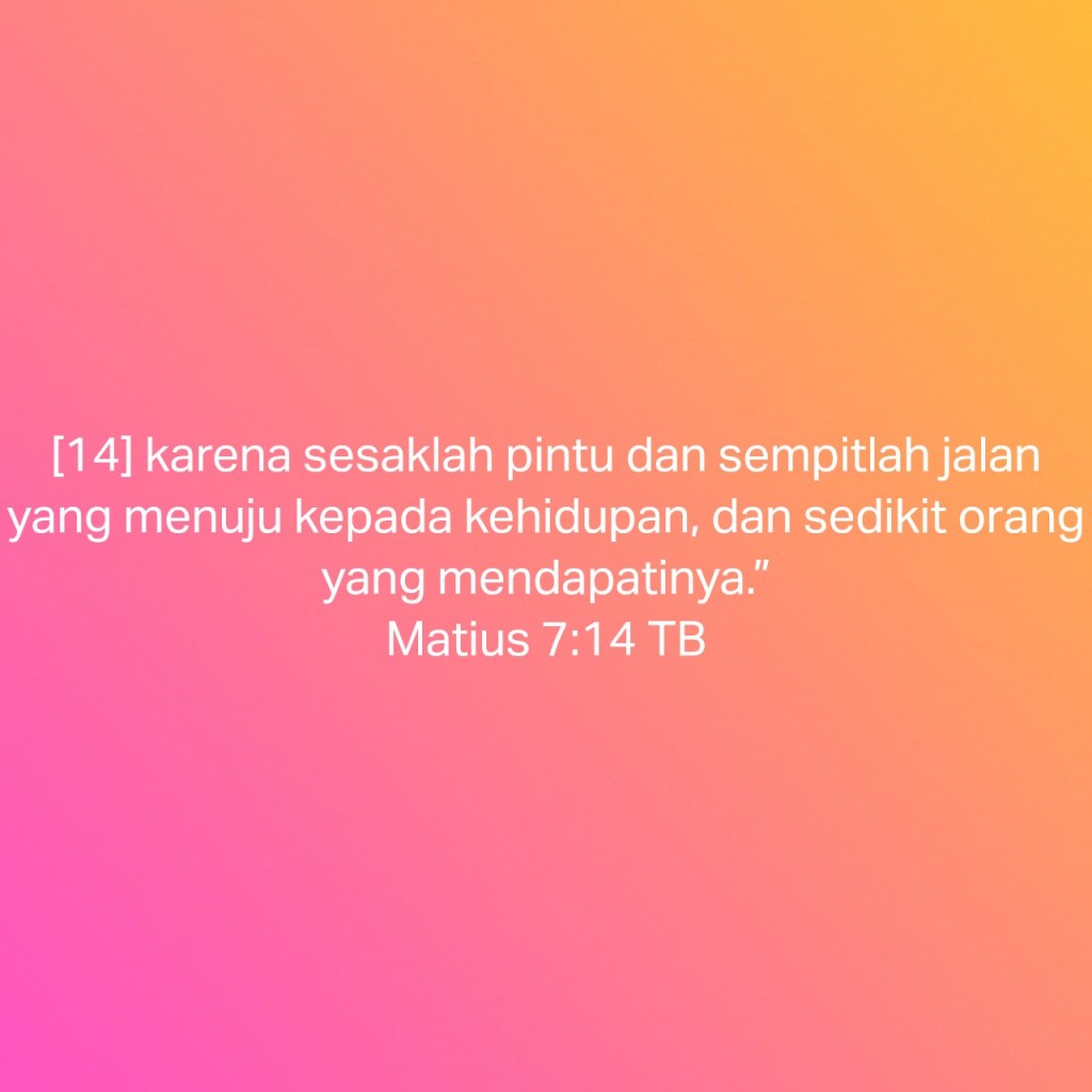“karena sesaklah pintu dan sempitlah jalan yang menuju kepada kehidupan, dan sedikit orang yang mendapatinya.